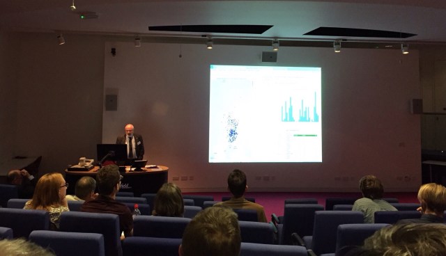 The majority of presentations looked at the floods from the perspective of northern England, so my talk on the impacts in Scotland of the flooding from storms Desmond and Frank and the work of the Scottish Flood Forecasting Service, provided a different viewpoint. SEPA’s Nigel Goody (below), past president of BHS, also looked at the destruction wrought in Scotland, in particular on our hydrometric capabilities, providing a warning about the huge uncertainties involved in measuring these sorts of events.