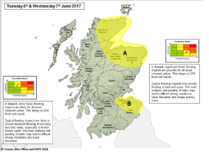 In the event, over 100mm of rainfall in 24 hours fell in some areas, and some rivers exceeded flooding levels, particularly in the north east. A number of Flood Alerts and Flood Warnings were issued. Some properties were evacuated and the Inverness to Aberdeen railway line was flooded. Surface water flooding issues were also widespread.