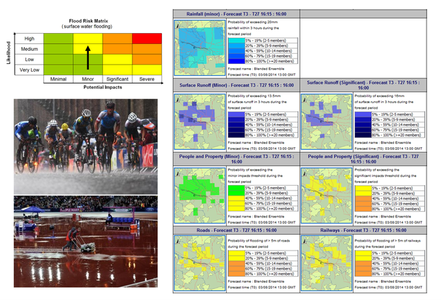 “The conversations between decision makers, meteorologists, hydrologists and model developers gave us a unique perspective on balancing end user needs with science and practical limitations. It truly was a co-designed product. Involving everyone early on meant there was a shared understanding of the uncertainties in forecasting the timing and location of surface water flooding and hence realistic expectations of the output. Although there were still some interesting communication challenges for the SFFS during the Games!”