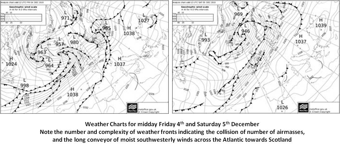Figure 1: Weather chart for 0000 GMT on 30th December shows storm Frank located to the NW of Scotland.