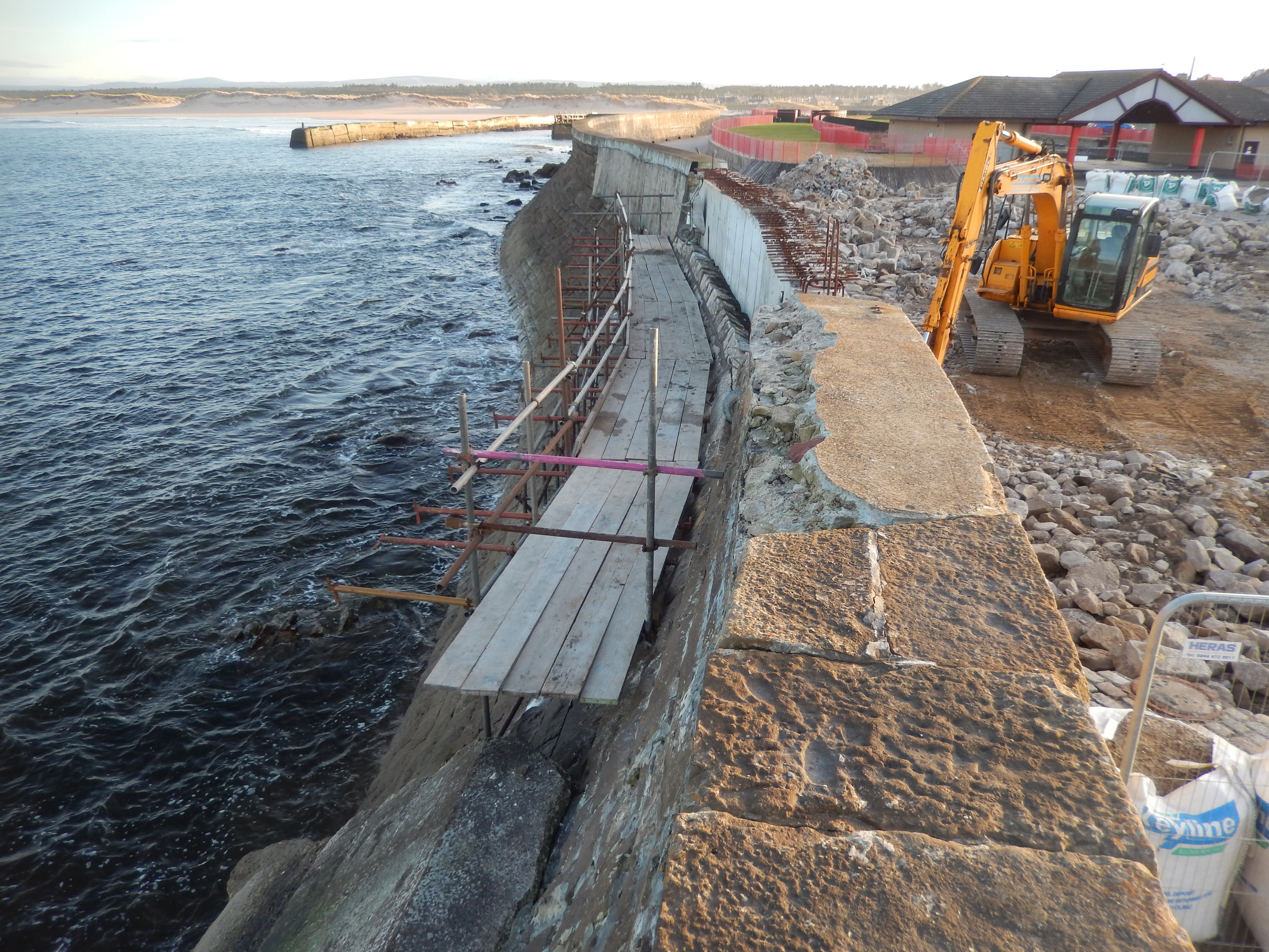 Ongoing repairs to Lossiemouth’s seawall as at 10 March 2014. Copyright: Darroch Kaye