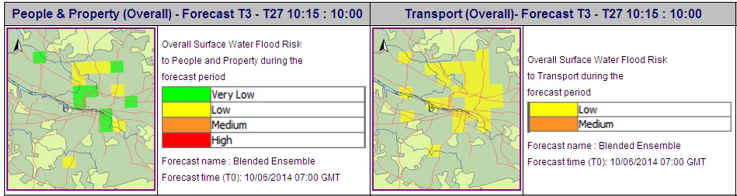 Potential flooding impacts were highlighted using the Grid-to-Grid (G2G) an operational model run by the flood forecasting service.